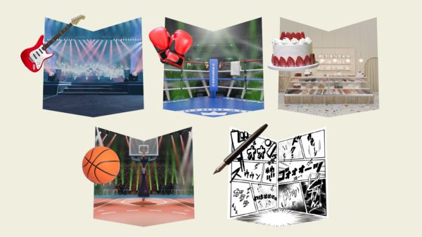「やりたいみつかるスタジオ体験」は、バスケットボールやギター、漫画用つけペンといった5つのアイテムからひとつを選び、LEDスタジオで“なりきり撮影”ができるコンテンツ。