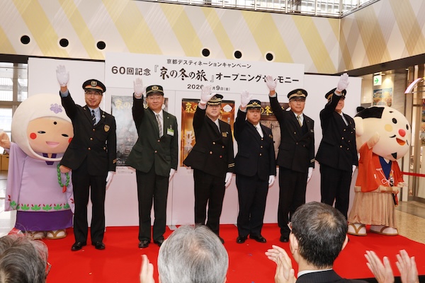 京都市および京都市観光協会(DMO KYOTO)は、2026年1月から3月にかけて、JRグループ6社と連携したデスティネーションキャンペーン「京の冬の旅」を実施します。1月9日(金)に開催されたオープニングイベントには、京都市長やJR西日本・JR東海・京阪・阪急・近鉄・京都市交の6駅長が集結し、餅つきや紅白餅の振る舞い、京都駅社員による演奏などを行いました。