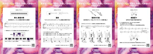 同時に、誰にでもすぐに挑戦できる「1フレーズ楽譜」を公開。こちらでもピアノ・ギター・サックス・ドラムを取り上げて、11曲をピックアップしています。そのうち8曲には演奏のコツをまとめたノウハウシートを用意しました。