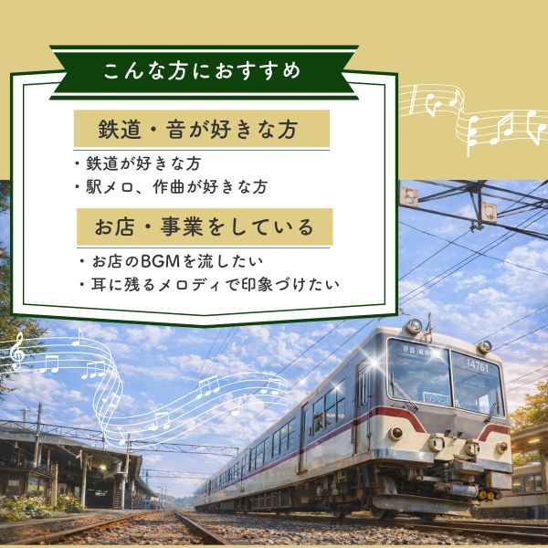 一般のクリエイターにとって、駅で放送される発着メロディーを制作できる機会はほとんどありません。そのため「自分の音楽が公共交通に流れる」という体験は、音楽制作者や鉄道ファンにとって大きな魅力となり得ます。また、地元企業や店舗がオリジナルの短いCMメロディーを制作すれば、前述の駅メロディー広告のように活用できます。