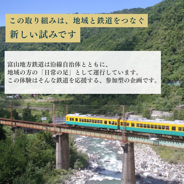 この企画の背景には、富山地方鉄道が抱える路線維持の課題があるそうです。少子高齢化や燃料費の高騰などにより利用者が減少し、厳しい経営環境が続いているといい、公共交通を「乗る」以外の方法で応援する新たな仕組みが求められてきました。