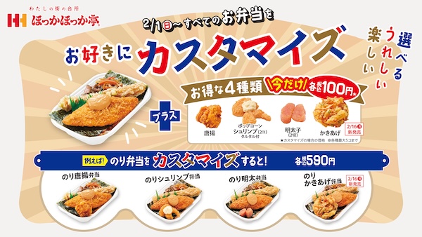 サービス開始を記念し、2026年2月2日(月)から28日(土)には公式アプリ「ほっかアプリ」経由のモバイルオーダー限定で「カスタマイズ弁当そっくりさん大発見キャンペーン」も実施中。同じカスタマイズ内容を選んだ利用者が現れると、双方に「そっくりさん大発見!」のプッシュ通知が届くという、仕掛けが用意されています。