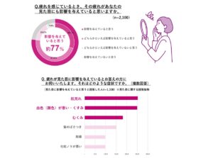 さらに、疲れが見た目にも影響していると答えた生活者は約77%にのぼり、ゾンビスクロールの背景でもある蓄積された疲れは、肌や表情といった”見た目”にも影響を与えやすい一方、セルフケアが後回しにされがちであるという美容面での課題が浮き彫りとなりました。