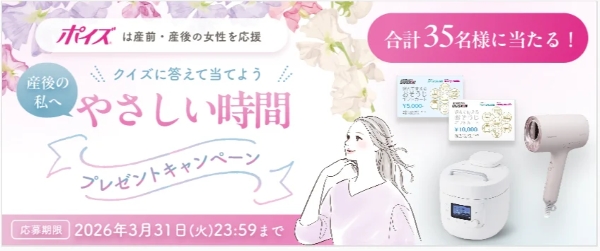同社はこうしたママたちの実態を踏まえ、産後の女性がセルフケアに向き合うきっかけをつくるため、「産後の私へ、やさしい時間プレゼントキャンペーン」を2026年3月31日(火)まで実施。