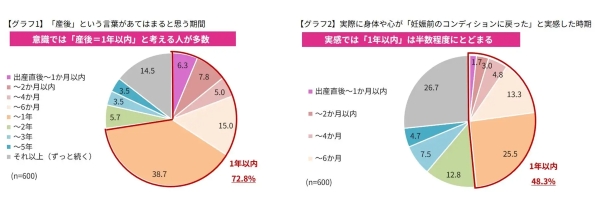 調査では、産後を「1年以内」と捉える人が約7割にのぼる一方で、心身の回復がその期間に追いつかなかったという声も多く挙がったとのこと。この認識と回復のずれを、同社は「かくれ産後」と表現しています。