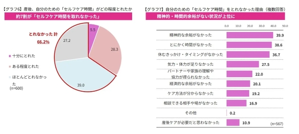 しかし同時に、「自分のための時間を取れなかった」という回答も約7割に達しています。精神的な余裕のなさや休むきっかけの不足などを理由に挙げる声がみられ、育児中心の生活の中で自分への意識が向きにくい状況が示されました。