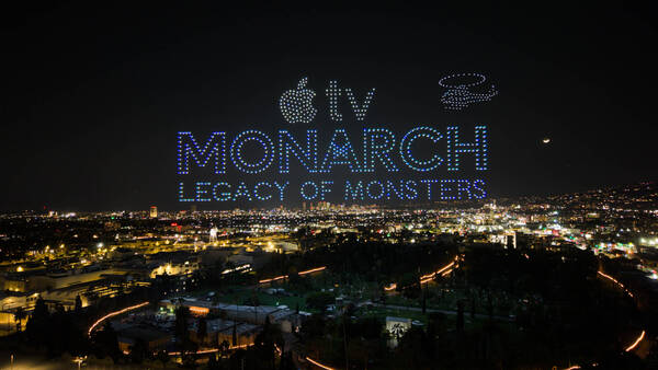 ロサンゼルスの夜空に突如現れた、巨大なゴジラとキングコング。これは映画のワンシーンではありません。Apple TV+がドラマシリーズ『Monarch: Legacy of Monsters』の最新シーズン配信に合わせて実施した、約3,000機のドローンによる大規模ショーです。