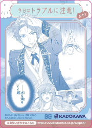 「めくると今日の運勢がわかる……かも」と書かれたイラストカードをはがすと、裏面には全体運や恋愛運などの占い結果とともに、その運勢に合わせたシーンも描かれています。占いのワクワク感と作品のドラマチック性を掛け合わせた演出です。