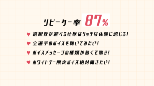 またメッセージは朝・昼・夜の時間帯に合わせて変化する仕掛けも施されており、推し選手が自分と同じ時間軸に存在しているかのような感覚を味わえます。バリエーションのある対話や日常生活の中で自然に接触頻度が高まる仕組みで、選手への愛着形成をより深めることにつながりそうです。