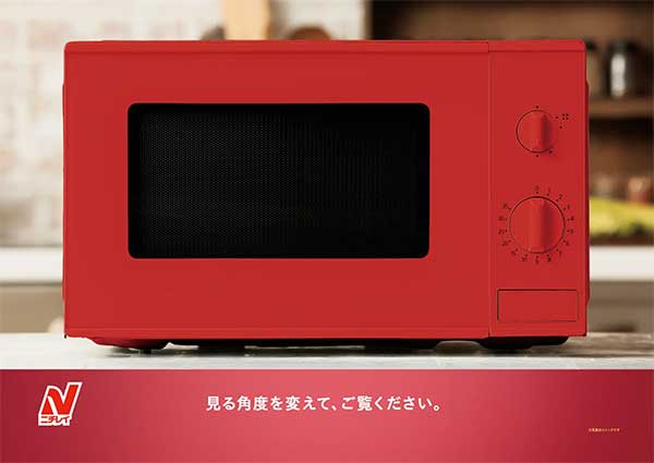 車内では、25年間の軌跡を辿る年表掲出のほか、最新の印刷技術「ベローズプリント」を用いた装飾を採用。見る角度によって、電子レンジの皿が回る様子を再現しています。静止画が中心の交通広告に商品の調理シーンを彷彿とさせる動きを加え、乗客の視線を集める仕掛けをつくっています。