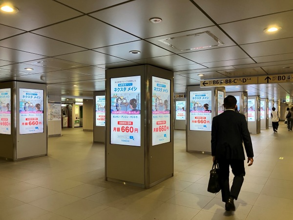 東日印刷は、法人向け名刺管理アプリ「ネクスタ・メイシ」のプロモーションとして、2026年4月20日(月)から26日(日)までの1週間、東京メトロ主要16駅・計309面のデジタルサイネージを活用した交通広告を掲出しています。
