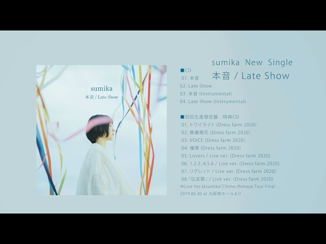 sumika、1月6日発売、『本音 / Late Show』のティザー映像を公開! プレスリリース