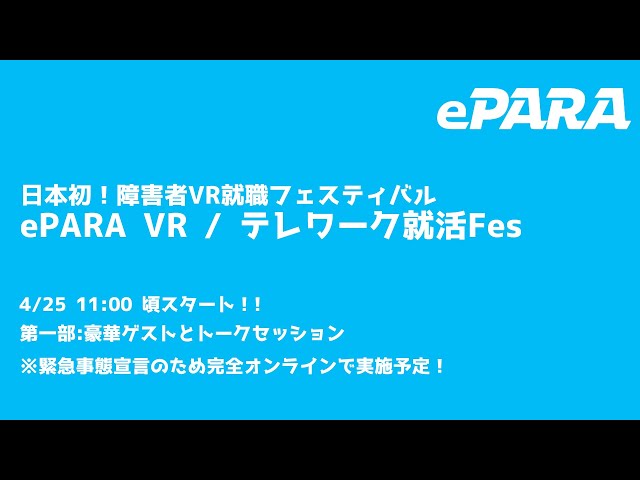 緊急事態宣言の発令によるイベント内容変更についてのお知らせ / VR就職フェス「ePARA VR/テレワーク就活Fes」(4月25日開催) プレスリリース