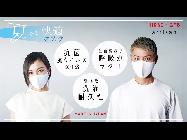 夏でも快適、抗菌・抗ウイルスの完全国産マスク「artisan」 がMakuakeで先行販売開始3時間で目標達成!HIRAX×GF8(八橋装院株式会社)がコラボしました! プレスリリース