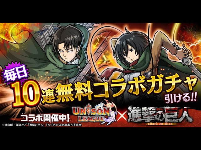 新感覚リアルタイムRPG『ユニゾンリーグ』がTVアニメ『進撃の巨人』コラボ第2弾を10月16日(土)から開催!コラボガチャ毎日10連無料!ログインボーナスでURコラボキャラ「エレン」もらえる! プレスリリース