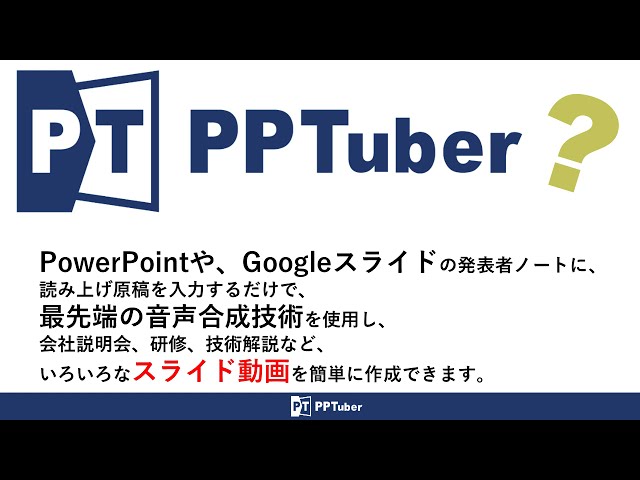 最先端の音声合成技術を使用し、簡単にスライド動画を作成できるサービス「PPTuber」に、より手軽に利用できる、「スモールビジネスプラン」が誕生! プレスリリース