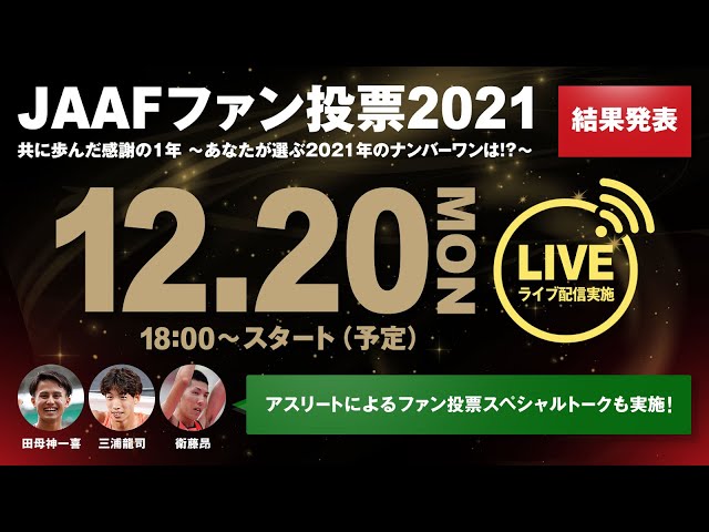 Tweet 記事をブックマークする 記事をブックマーク済み 0 2021.12.17 0 【JAAFファン投票2021】★結果発表 生配信★ ~選手の活躍と共に、白熱の1年を振り返ろう!~三浦龍司×田母神一喜×衛藤昂 スペシャルトークも開催! プレスリリース 配信元: PR TIMES Tweet 記事をブックマークする 記事をブックマーク済み 0 記事一覧に戻る