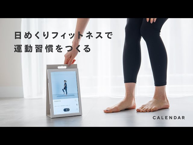CALENDARはスマート日めくりカレンダー(10.1インチAndroid端末)を使った、習慣化にフォーカスしたオンラインフィットネスサービスです。習慣化しやすいメソッドをサービスに活用しており、育児や在宅勤務などでの運動不足に課題を感じ、日々の運動習慣をつけたい方の在宅での運動習慣づくりをサポートします。