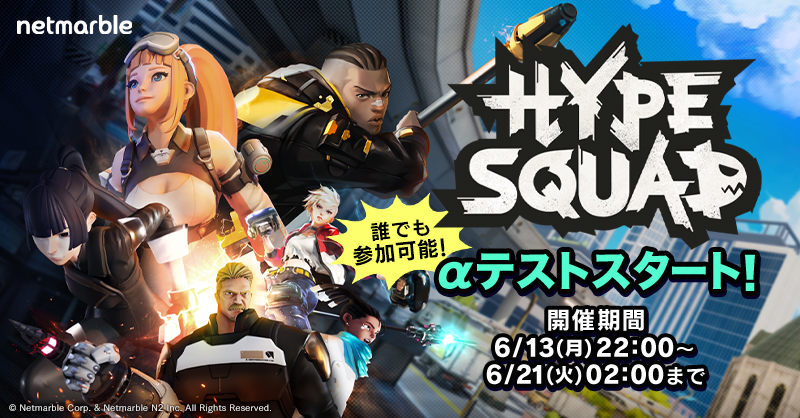 『HypeSquad』では、全世界のプレイヤー向けに実施するαテストを6月13日(月)22時より開始いたしました。テスト期間中は誰でも参加することが可能です。