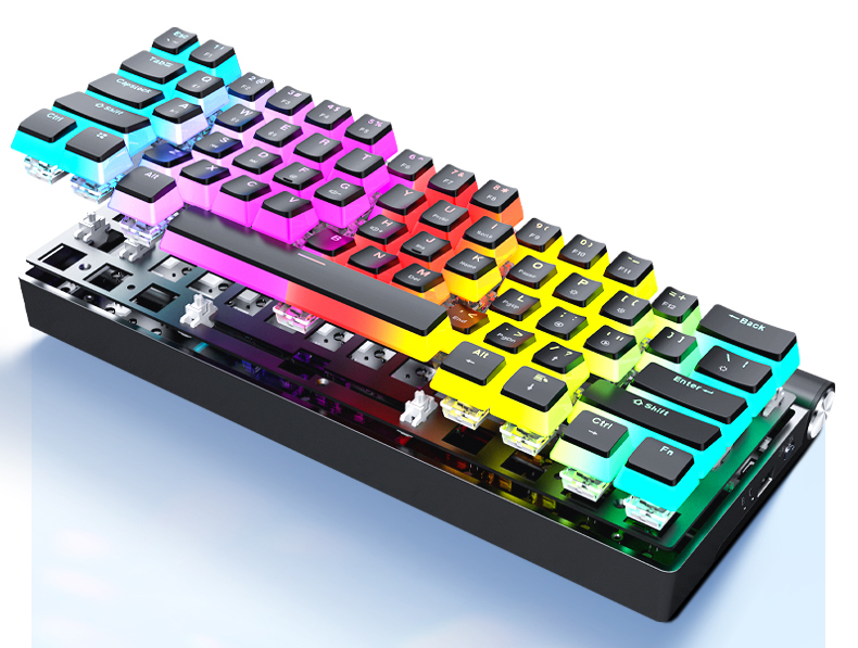 メカニカルキーボートK618は、ノートPCや安価なキーボードに一般的に用いられる、浅くてふかふかしたメンブレン(膜)タイプと異なり、高さのあるキーのひとつひとつに入力スイッチ機構が搭載され、しっかりとした押し感と跳ね返し感(レスポンス)があり、ミスタッチが減り、仕事の効率やゲームの正確性がUP。