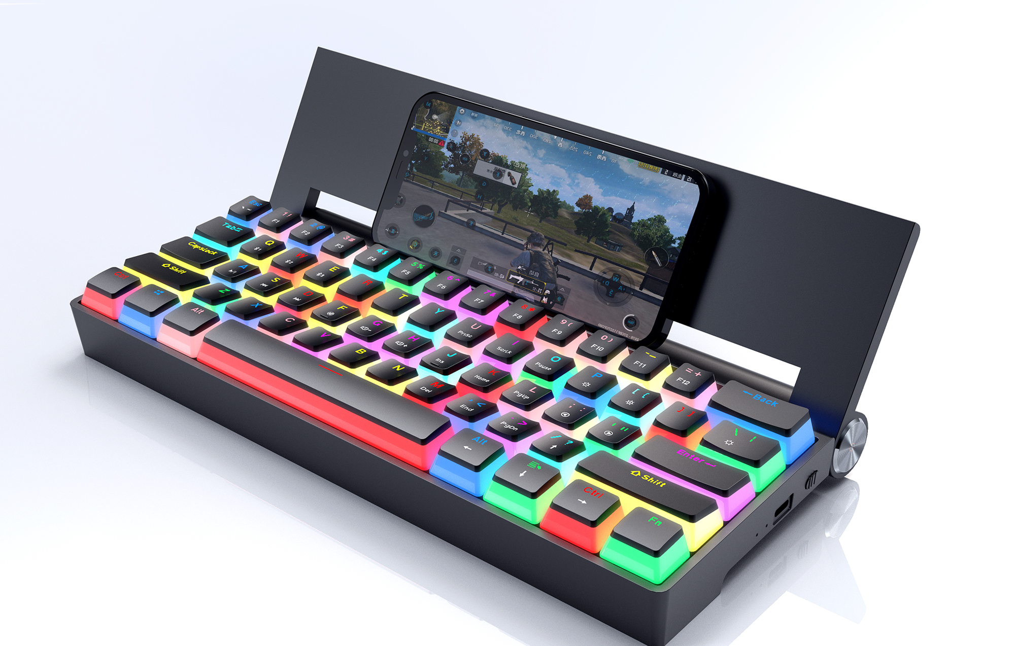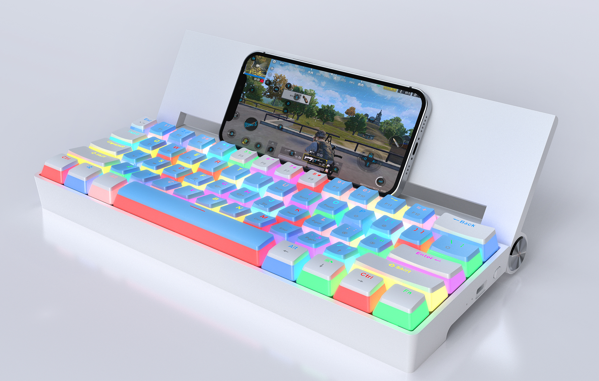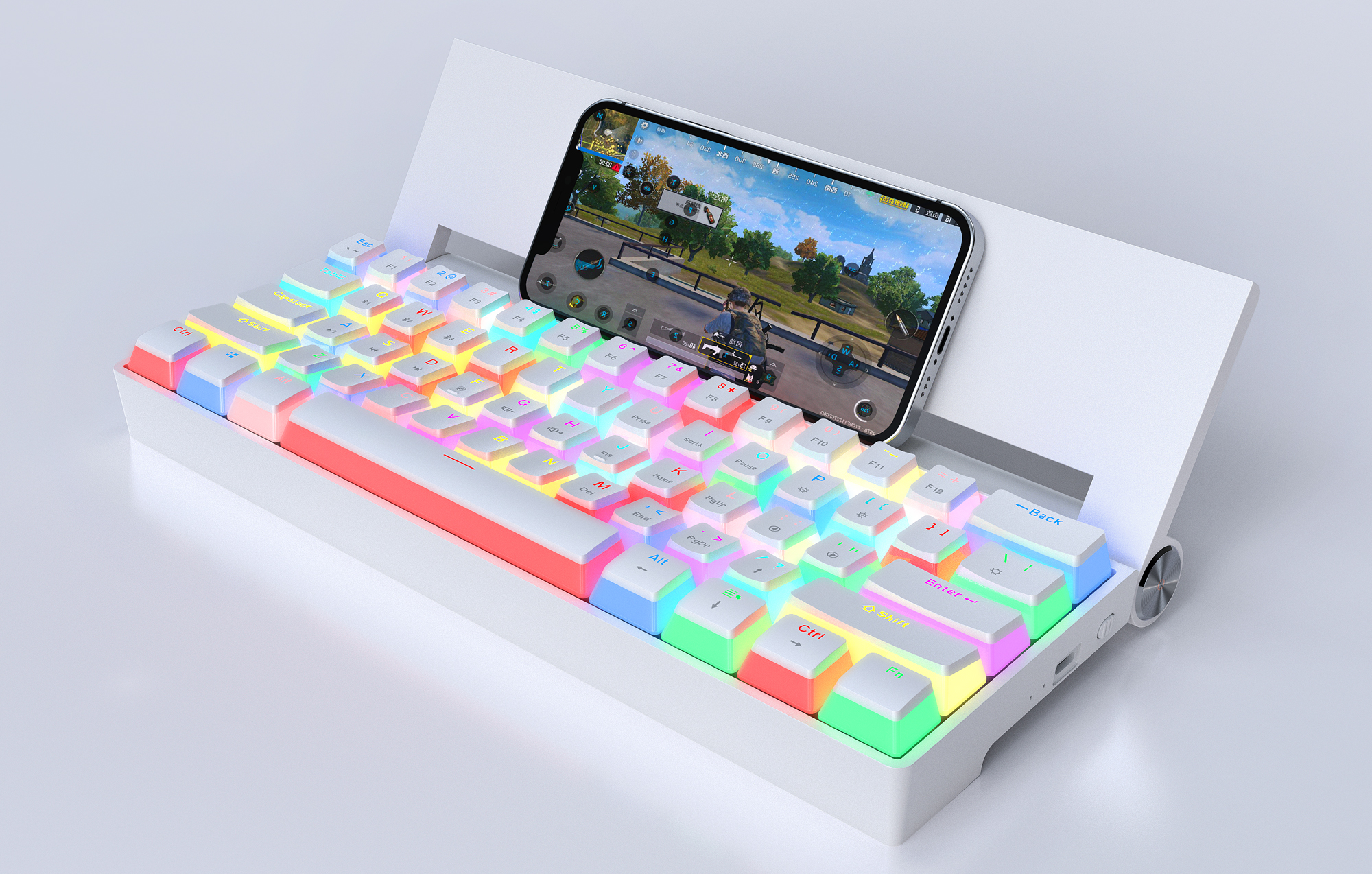 21種類のバックライトがダイナミックに変化。キートップはプリン型+半透明設計。暗い部屋での使用を楽しく盛り上げます。