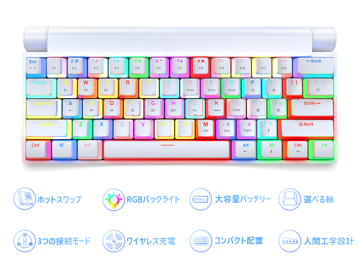 メカニカルキーボードのやみつきになる打鍵感、3種類の接続法やスマホワイヤレス充電などの多機能、そしてダイナミックに変幻するバックライト、人間工学設計、自分だけのカスタマイズ可能な自由度の高いデザイン性を兼ね備えた【K618】メカニカルキーボードです!