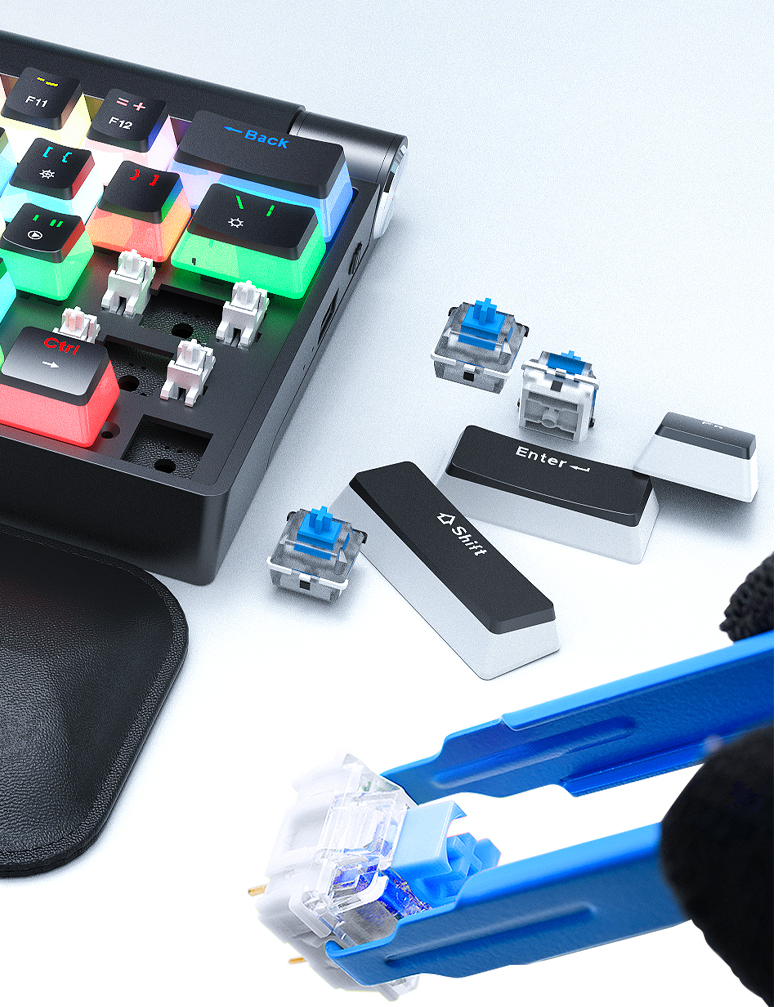 ホットスワップ機能とは電源を入れたまま付属のキー引き抜きツールでキートップを外し、気軽に交換が可能です。