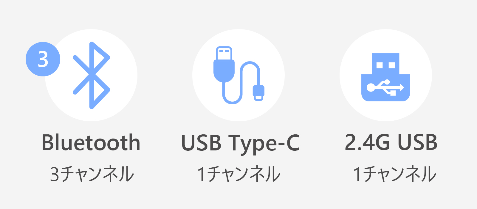 接続方式:ケーブル(USB Type-C)、ワイヤレス(Bluetoothまたは2.4GHz USBドングル)
