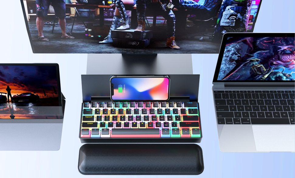 メカニカルキーボードK618は3つの接続モードで自由に接続、5台のデバイスと同時に接続可能。PC、スマホ、タブレットなどあらゆるデバイスの入力作業の効率UPに。
