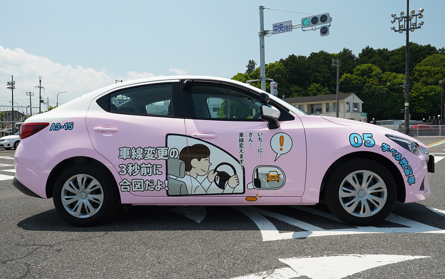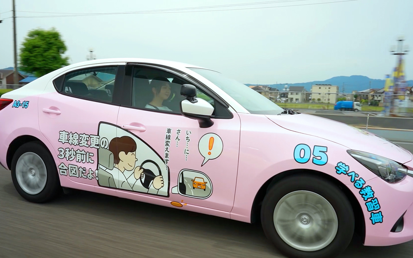そこで、運転のコツをラッピングした「学べる教習車」を5台、運用開始。ドライバーも忘れがちな、運転アドバイスを載せて走ります。