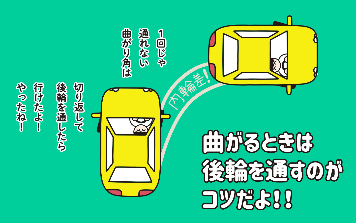 曲がるときは後輪を通すのがコツだよ!!