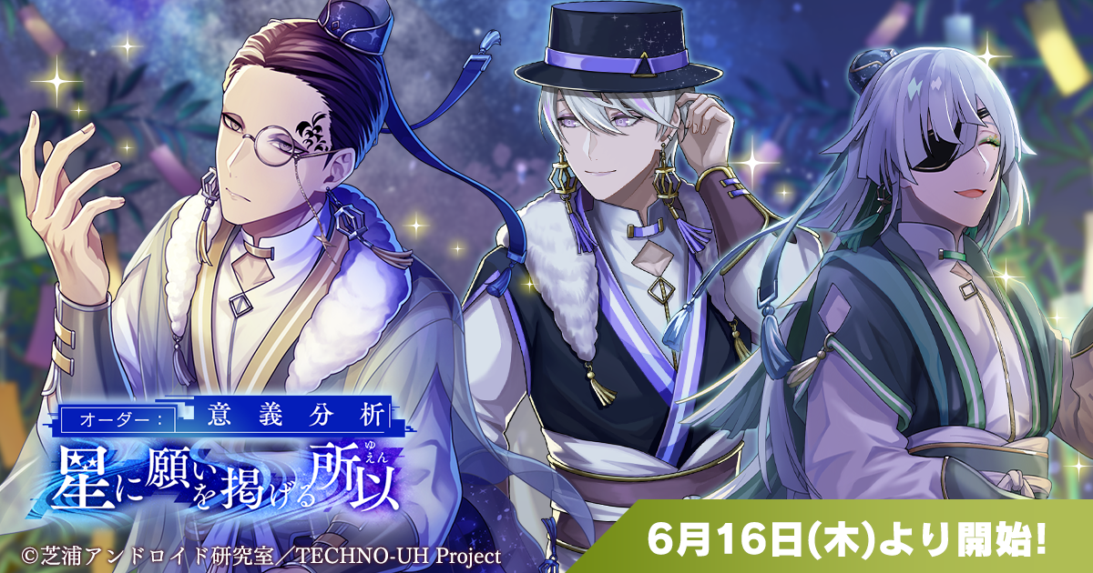 スマホゲーム『テクノロイド ユニゾンハート』にて、本日6月16日(木)17時よりゲーム内七夕イベント「オーダー:意義分析 星に願いを掲げる所以」が開催中です。