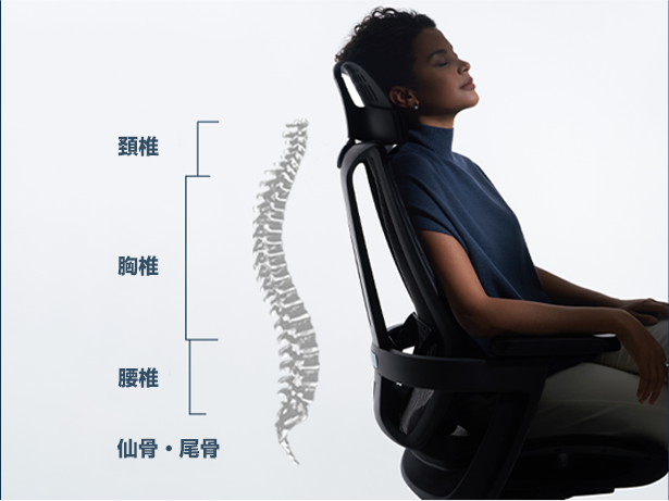 - 最先端の人間工学設計を採用!全面で体を支えて首から背中、下半身の負担を軽減