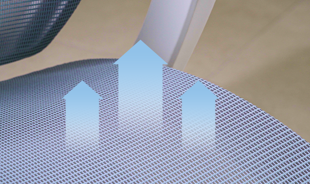 背もたれと座面に通気性の高いメッシュ生地を採用。サラッとした手触りと弾力により、どんな季節でも長時間ムレずに爽やかな座り心地を実現します。