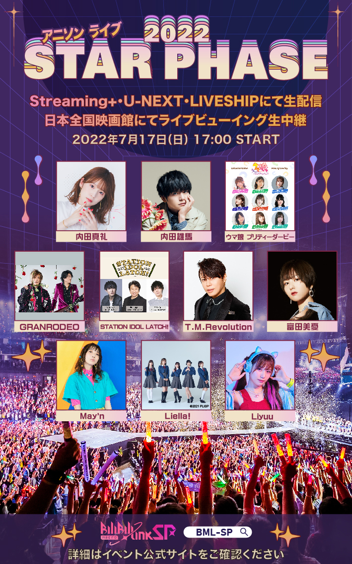 出演アーティスト: 内田真礼 / 内田雄馬 / ウマ娘 プリティーダービー / GRANRODEO / STATION IDOL LATCH! / T.M.Revolution / 富田美憂 / May’n / Liella! / Liyuu(50音順)