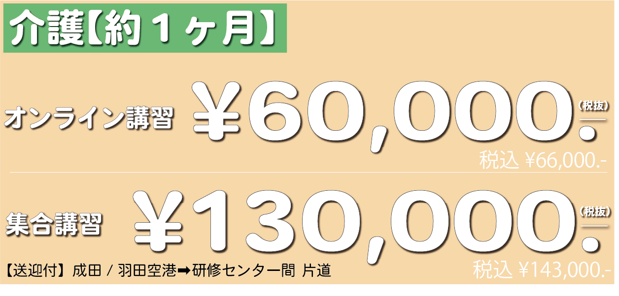 【介護】オンライン講習 66,000.-(税込) 集合講習 ¥143,000.-(税込)