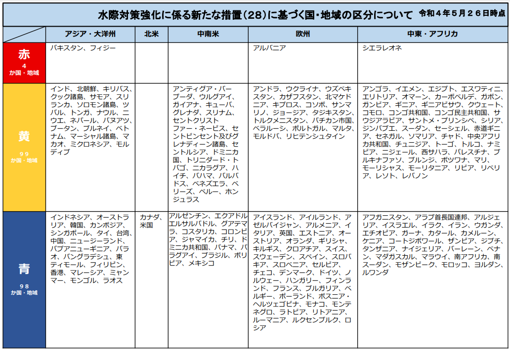 厚生労働省「水際対策における国・地域の区分」