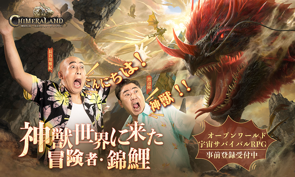 オープンワールド宇宙サバイバルRPG『神獣伝説~エボルション・ディバウア~』。アンバサダーにお笑いコンビ錦鯉さんが就任!「こーんにちはー!神獣だよっ!」 プレスリリース