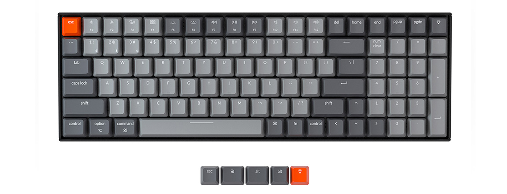 Keychron K4は、コンパクトなデザインに必要な100個のキーを搭載し、フルサイズの機能を備えています。Gateronメカニカルスイッチをプリインストールしたホットスワップ対応オプションもご用意しているので、ハンダ付けをせずにキーごとのタイピング・エクスペリエンスを自由にカスタマイズすることができます。