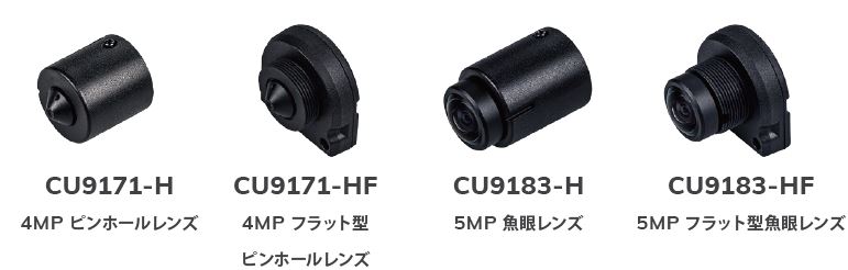 | センサータイプ | CU9171-H(F): ピンホールカメラ 1/2.7 プログレッシブ CMOS CU9183-H(F): パノラマカメラ 1/2.7 プログレッシブCMOS |