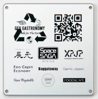 〈記念品〉地球と対話するフードシステム「ジオ・ガストロノミー」公式サイトへのQRコードを印刷したアルミ板