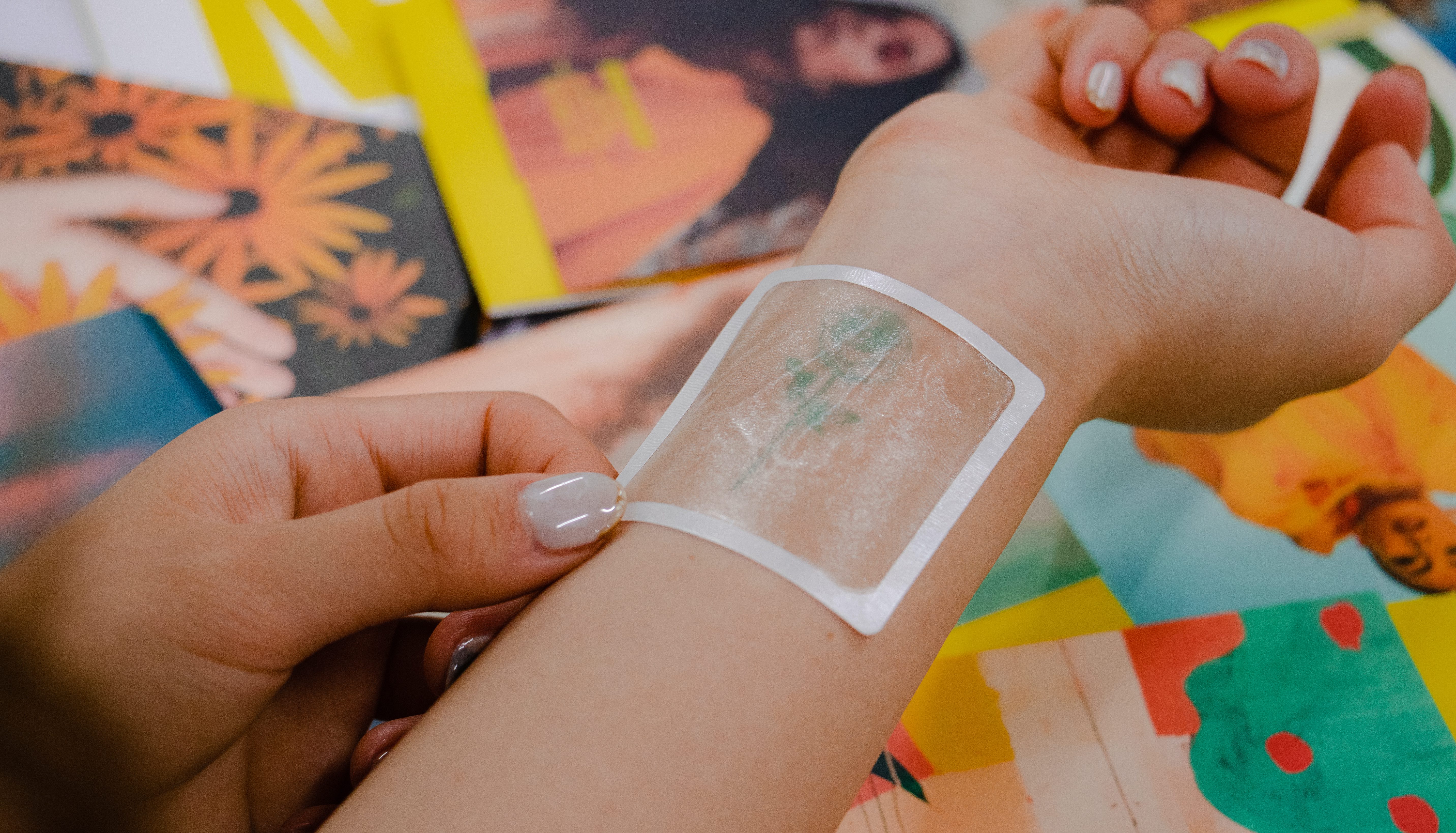 Inkboxは、肌の表皮に特許取得したフォーミュラを浸透させることで、自然由来の成分がタンパク質と反応し、肌を黒/紺色に変色させます。伝統的なタトゥーは、真皮まで浸透するため消えることはありません。それに対し、Inkboxは表皮にしか浸透しないため、肌が再生するサイクルである約2週間で角質とともに薄れていきます。そのため従来のタトゥーシールと違い、水に濡れてヨレたり、1日で消えてしまう心配はありません。また本物のタトゥーのような質感を再現できます。またInkboxのインクは、すべて自然な原料で作られており安全です。
