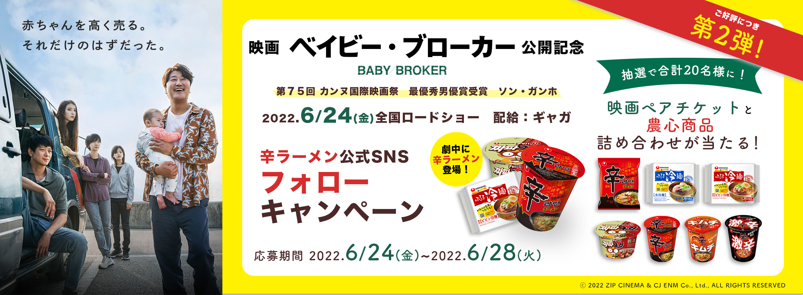 映画「ベイビー・ブローカー」ペアチケット&農心商品詰め合わせ