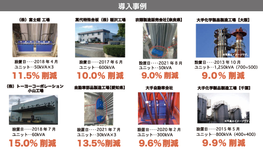 いずれの企業様も電力使用量9%~最大15%削減という高い導入効果を得られています!