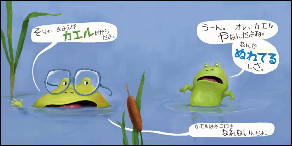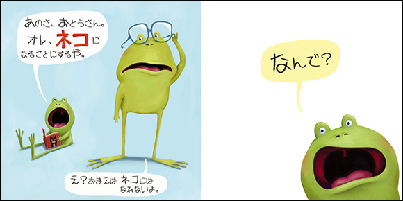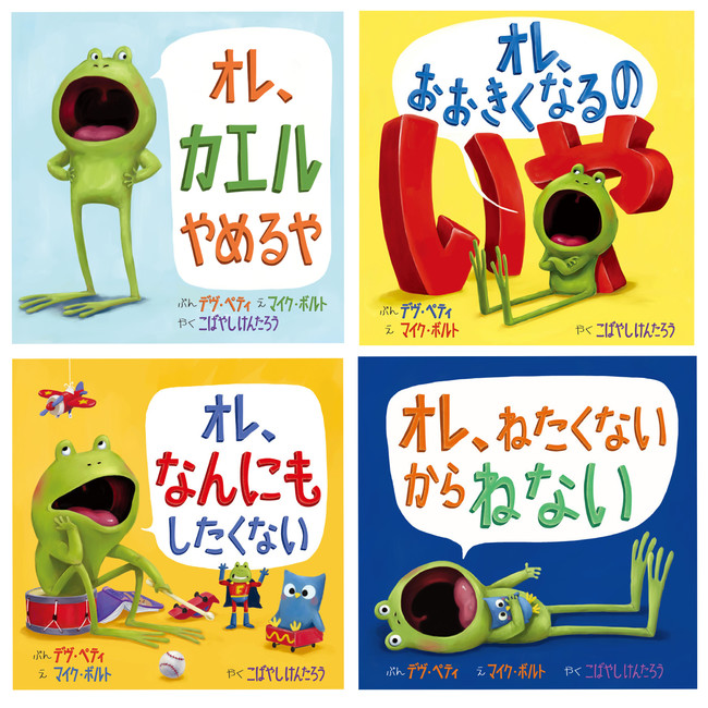 カエルシリーズの絵本は、カエル親子の陽気な会話で繰り広げられる自己肯定の物語。