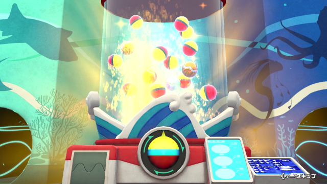 集めたメダルを使い魚登場ガシャを回し、水族館の完成を目指します。