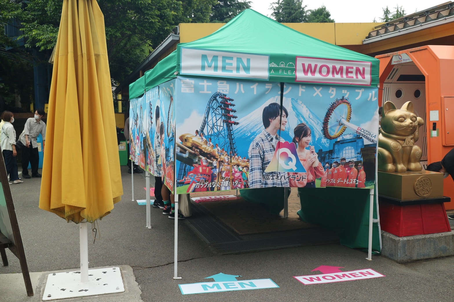 リアルマッチングの仕組みはとてもシンプル。入り口に設置されたマッチングレーンに並び、同じタイミングで順番がきた男女がその場で即マッチング!一緒にアトラクションへ。