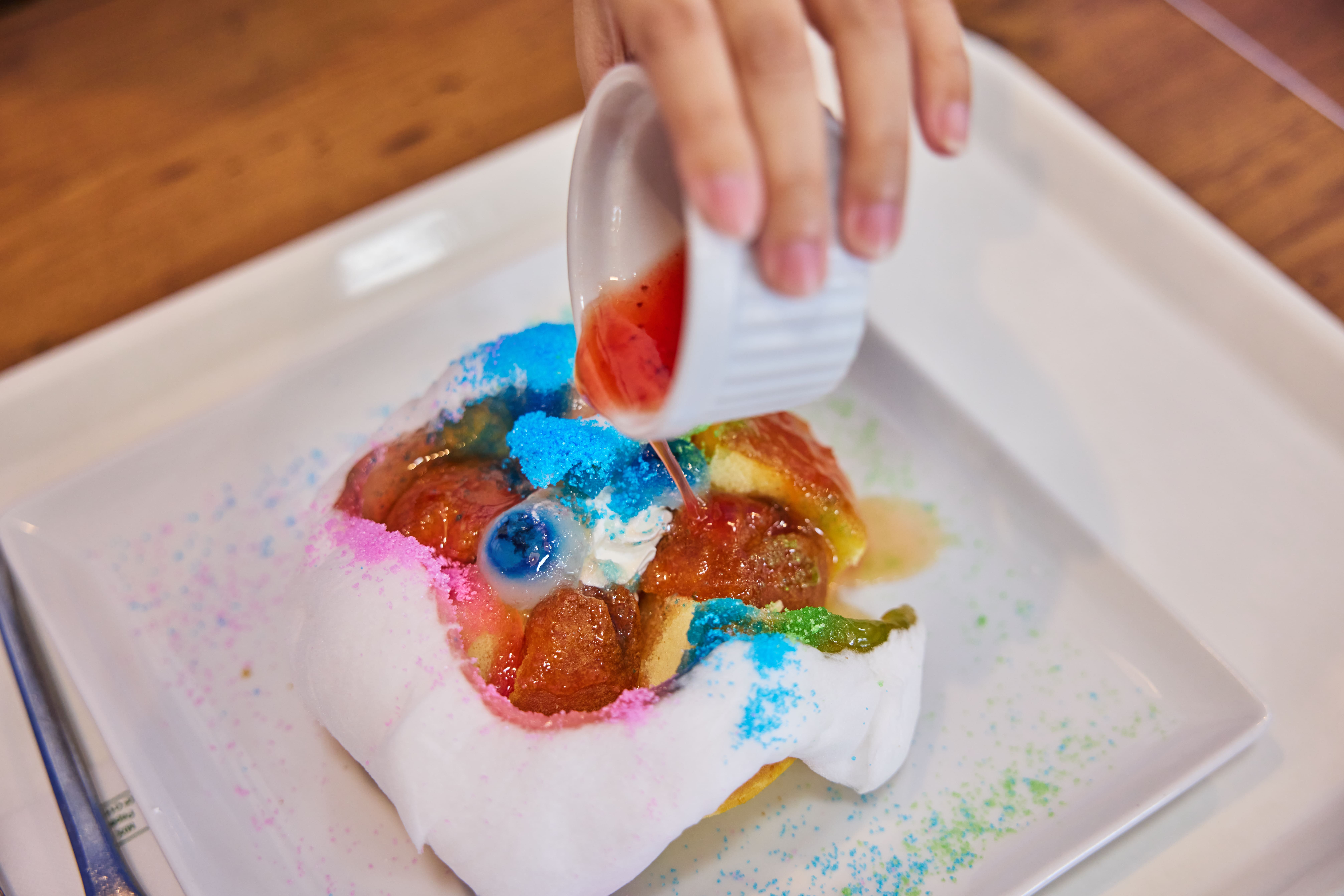 コラボを記念して様々な種類のフードメニューも登場。なかでもフードスタジアム内で食べられる「びっくりパンケーキ」は切り分けると中に恐ろしい目玉が!見た目のふんわり感とのギャップに驚きを隠せません。