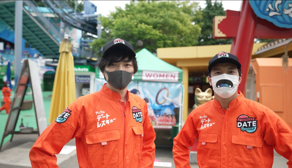 イベント後半の25日、26日は6月とは思えない30度を超える真夏日となりましたが、涼と出会いを求める男女で100名近くの行列ができるほどでした。オレンジ色のユニフォームを着用した「タップルデートレスキュー隊」が男女4人グループになるようマッチングサポートをしてご案内させていただきました。