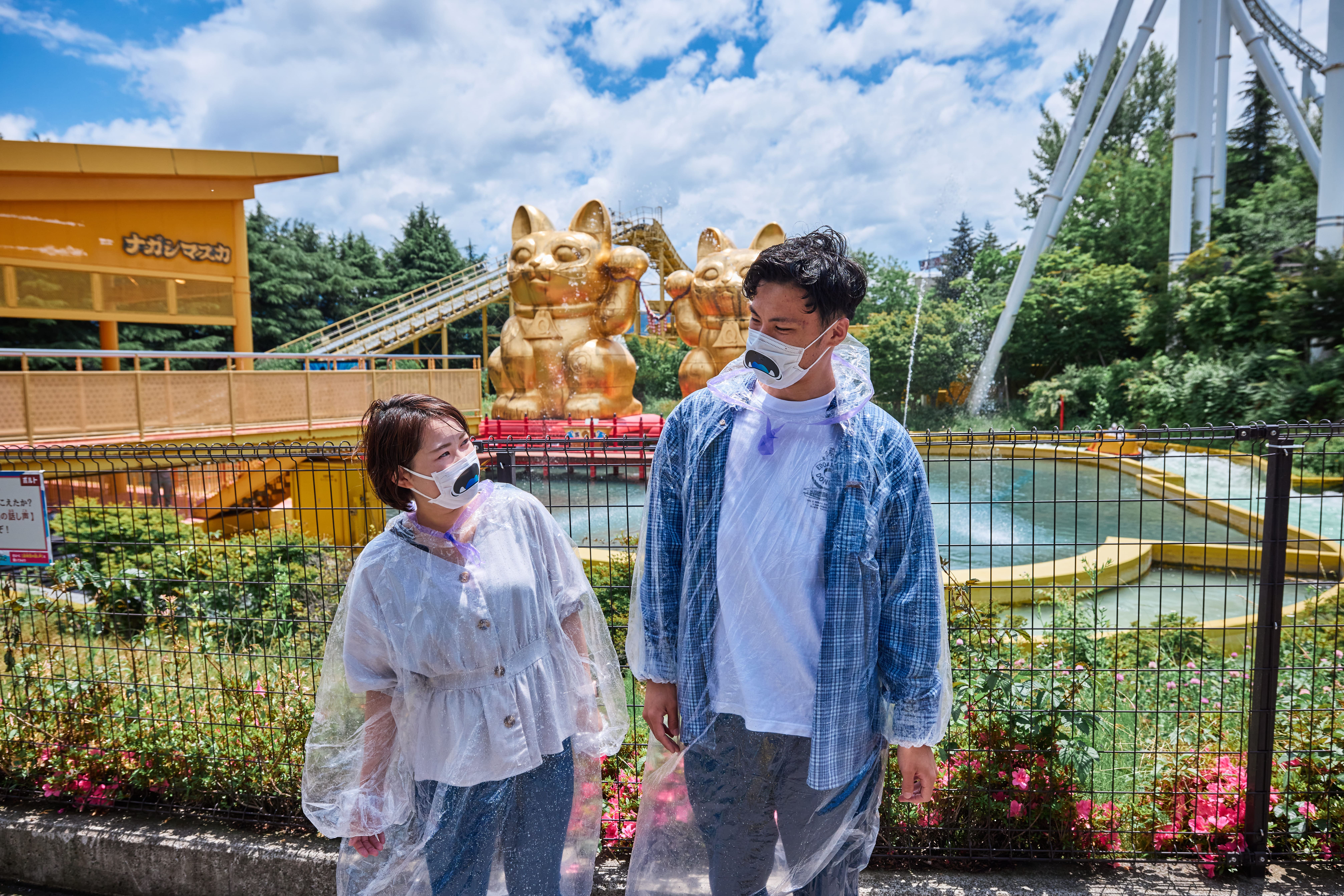 レインコートを着てずぶ濡れに!リアルマッチングした男女4人グループで他のアトラクションへと向かっていく方々もいらっしゃいました。